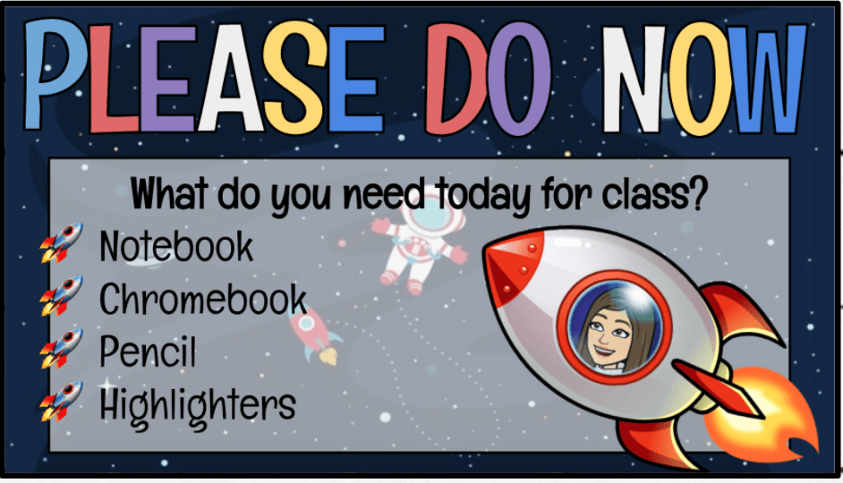 For my headers, I use Word Art and do each letter individually (this allows me to space better and alternate colors). In addition, you can insert your Bitmoji, clipart, or other images to reflect your lesson.