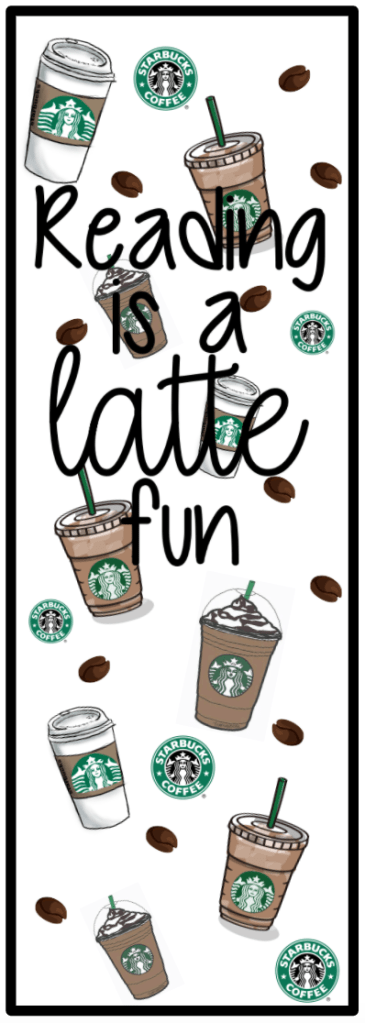 After I had this, there was one other thing I wanted to create on my own before I focused on decorations. I create bookmarks for my students and have them available at all times throughout the year. That way, if they find a book they like, they have a bookmark to go with it and keep their page. It’s something small but I really do believe it helps create a culture for reading in our classroom. I created a coffee themed bookmark and had them set out so students could take one if they wanted when they gave me their drink order. (the bookmark is not included in the Starbooks product on TPT but it is included in my free bookmarks on my TPT)