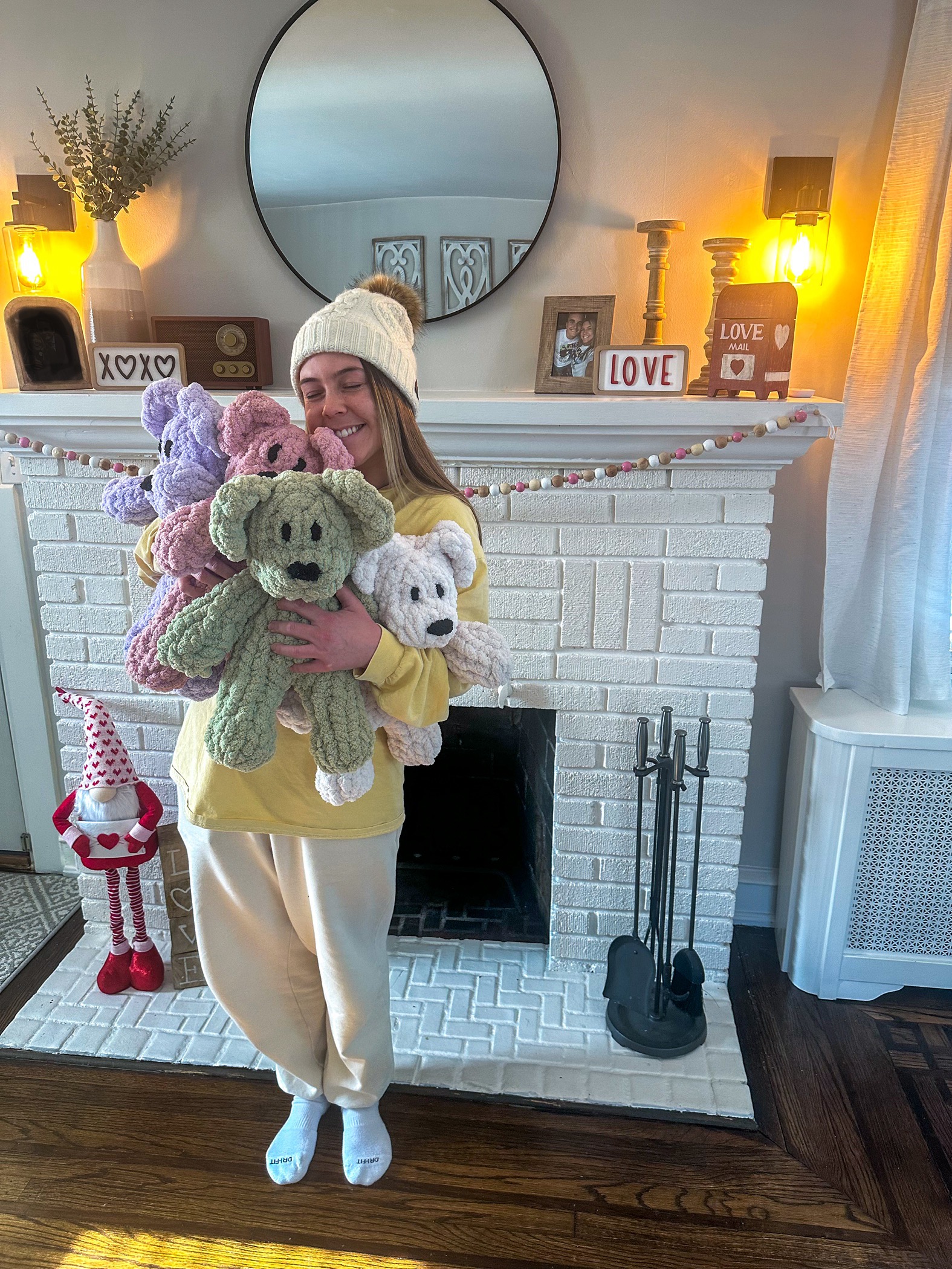 While many of my creative ideas revolve around my students, I recently realized I wanted a creative outlet at home. A friend introduced me to hand-knitting, and I was instantly hooked. My curiosity led me to explore what else I could make, which brought me to hand-knitted stuffed animals. When one of my best friends had a baby, I decided to try making her a special gift. I found a tutorial on Etsy, and from that moment, my creations took off.